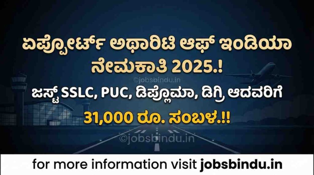 ಏರ್ಪೋರ್ಟ್ ಅಥಾರಿಟಿ ಆಫ್ ಇಂಡಿಯಾ ನೇಮಕಾತಿ 2025 ಉತ್ತರ ಪೂರ್ವ ಭಾರತದ ಯುವಕರಿಗೆ ಕೇಂದ್ರ ಸರ್ಕಾರದ ಗೌರವಾನ್ವಿತ ಉದ್ಯೋಗ ಪಡೆಯುವ ಅಪರೂಪದ ಹಾಗೂ ಸುವರ್ಣ ಅವಕಾಶ ಒದಗಿಸಿದೆ ಅಂತ ಹೇಳಬಹುದು ಅದರಲ್ಲಿಯೂ ಏರ್ಪೋರ್ಟ್ ನಲ್ಲಿ. ವಿಮಾನಯಾನ ಕ್ಷೇತ್ರದಲ್ಲಿ ಸ್ಥಿರ ಭವಿಷ್ಯ, ಉತ್ತಮ ವೇತನ ಮತ್ತು ಭದ್ರ ಜೀವನ ಬಯಸುವ ಅರ್ಹ ಅಭ್ಯರ್ಥಿಗಳು ಈ ಅವಕಾಶವನ್ನು ತಪ್ಪಿಸಿಕೊಳ್ಳಬಾರದು ಅಂತ ಹೇಳುತ್ತಾ ಅರ್ಹ ಮತ್ತು ಆಸಕ್ತಿ ಹೊಂದಿರುವಂತಹ ಅಭ್ಯರ್ಥಿಗಳು ಅರ್ಜಿ ಸಲ್ಲಿಸಬಹುದು.