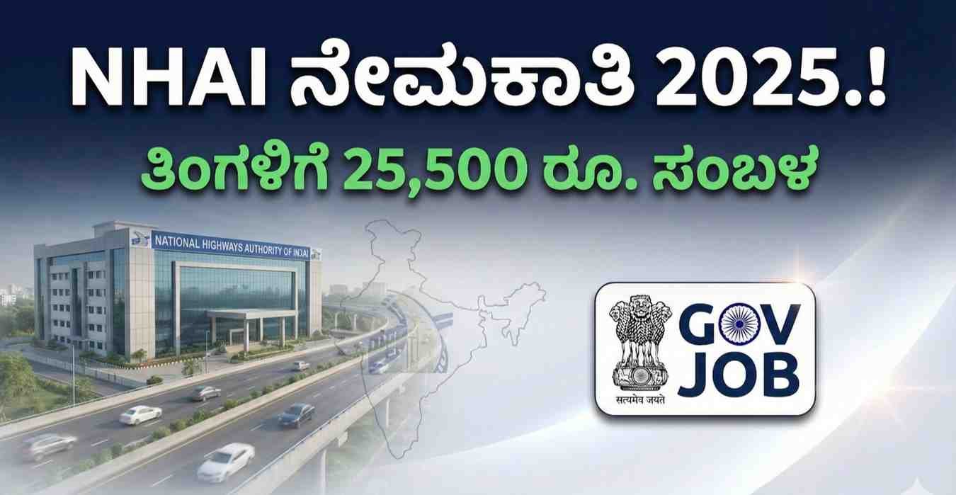 NHAI ನೇಮಕಾತಿ 2025.!ಡೆಪ್ಯೂಟಿ ಮ್ಯಾನೇಜರ್, ಅಕೌಂಟೆಂಟ್ ಮತ್ತು ಇತರೆ ಹುದ್ದೆಗಳಿಗೆ ಅರ್ಜಿ ಆಹ್ವಾನ..! ತಿಂಗಳಿಗೆ 25,500 ರೂ. ಸಂಬಳ.!!