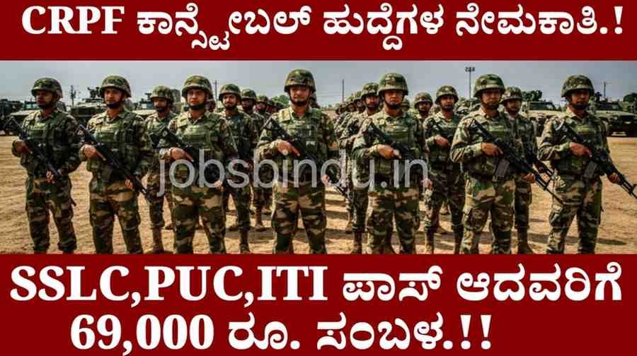CRPF ಕಾನ್ಸ್ಟೇಬಲ್ ಹುದ್ದೆಗಳ ನೇಮಕಾತಿ 2025–26.!SSLC,PUC ಪಾಸಾದವರು ಕೂಡಲೇ ಅರ್ಜಿ ಸಲ್ಲಿಸಿ.!!